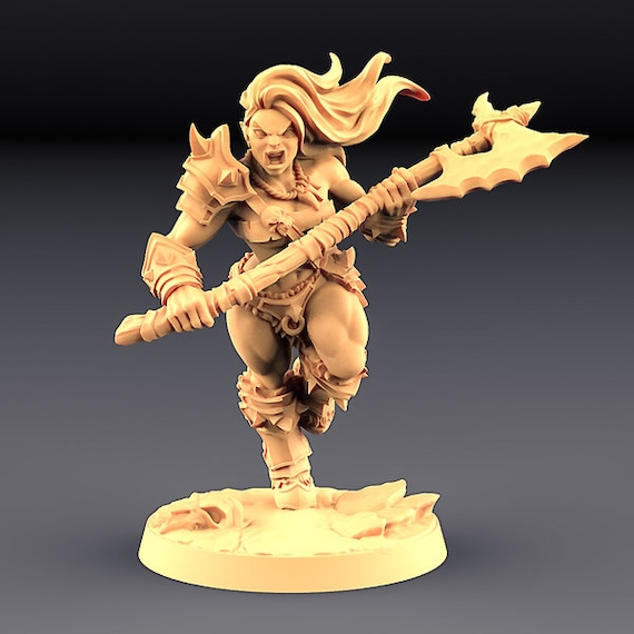 Female Orc Barbarian V1 3d Printed Resin Miniature Tabletop Etsy